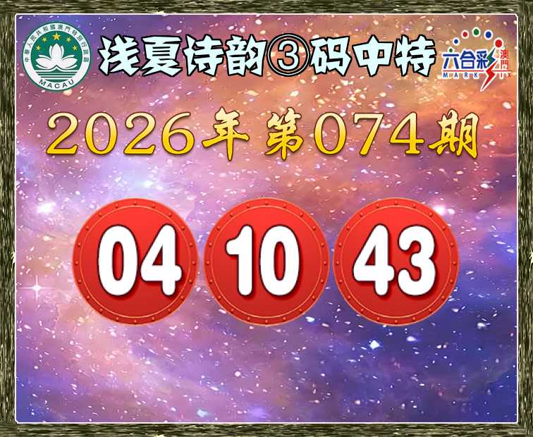 074期:【浅夏诗韵】 🥼③码中特🥼【04.10.43】开:10